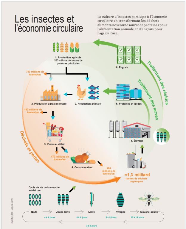 De plus, les insectes transforment les déchets alimentaires en protéines utilisables, ce qui rend le cycle de production alimentaire plus durable.