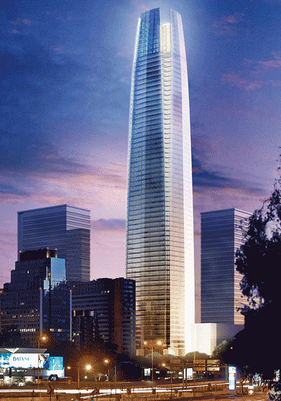 Costanera Center in Santiago, Chili is 300 meter hoog en heeft een oppervlakte van 280.000 vierkante meter. De eigenaar van de toren is Censocud.