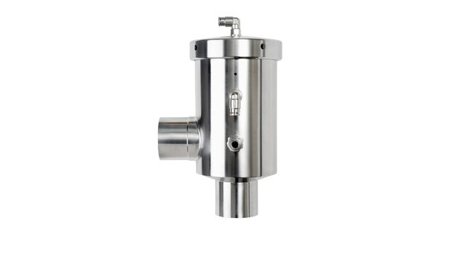 Om uitzonderlijk hoge hygiëneniveaus te behalen, heeft dit regelventiel een eenvoudig en overzichtelijk ontwerp. Gladde oppervlakken en voedselveilige afwerkingen dragen bij aan superieure hygiëne en reinigbaarheid. Voor snelle en effectieve reiniging wordt een reinigingsmondstuk meegeleverd voor inline reiniging van het ventiel tegelijkertijd met Cleaning-in-Place van de vent-/opvangleidingen. Als alternatief is een optioneel CIP-aanvoerventiel beschikbaar om een CIP-systeem rechtstreeks op de ventielbehuizing aan te sluiten.